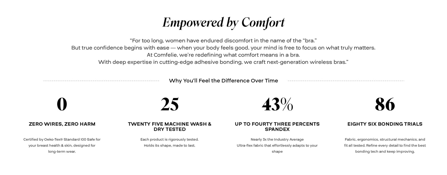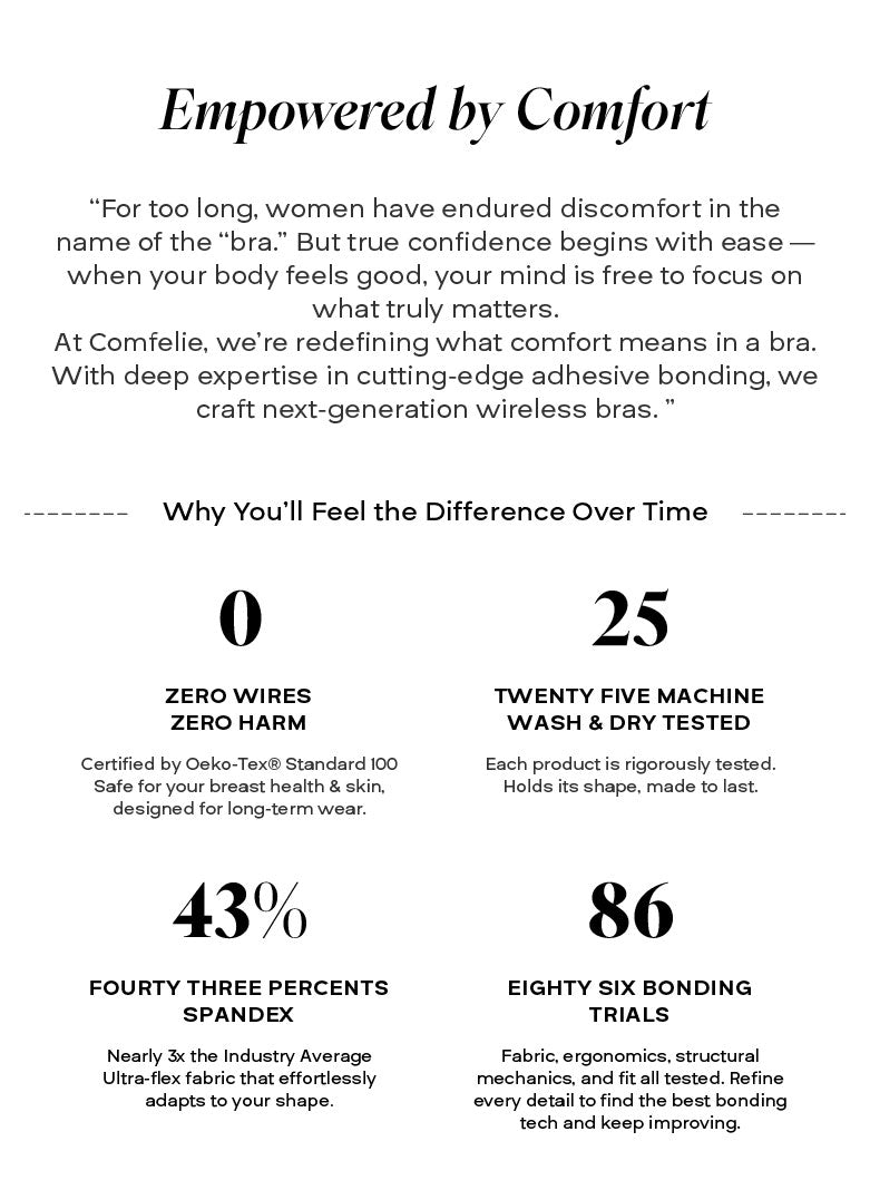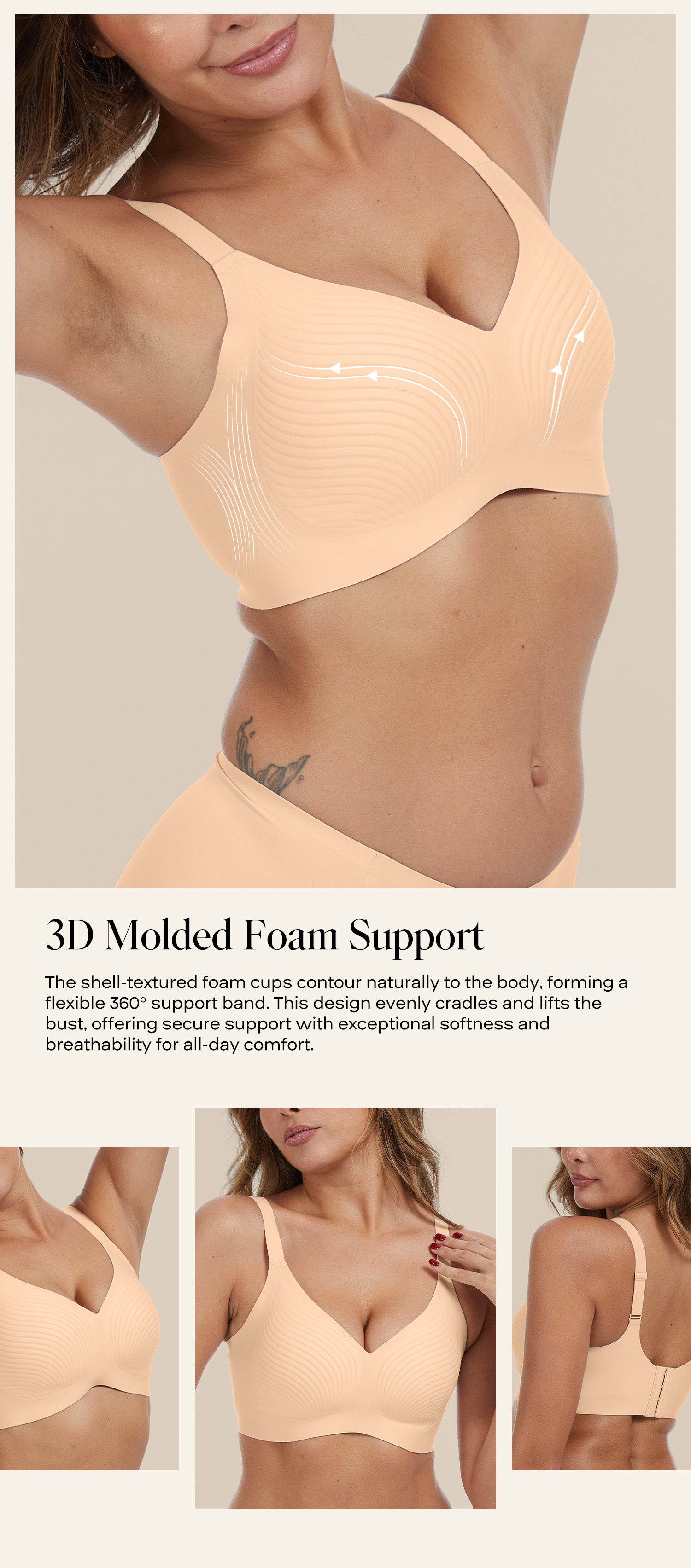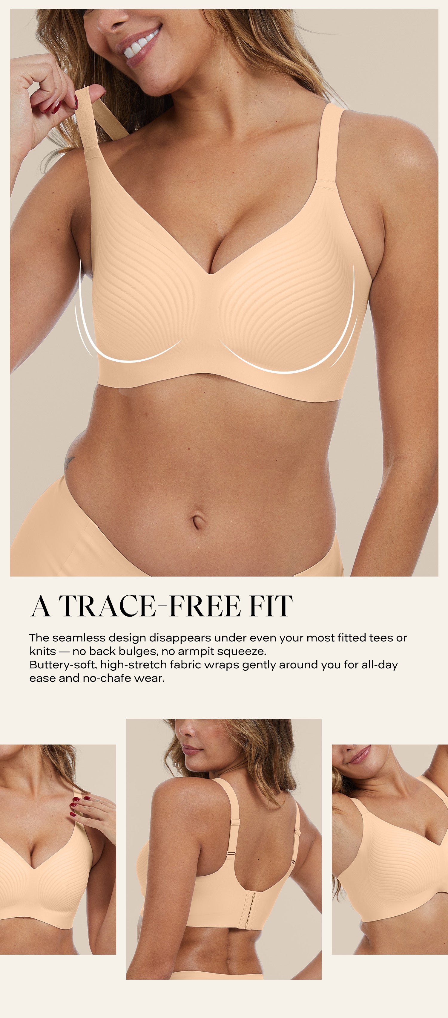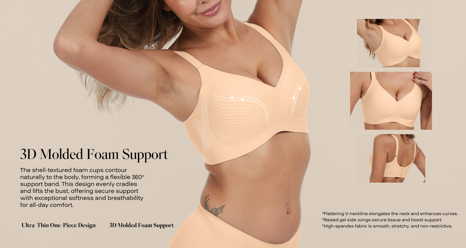 Comfelie’s 2mm Ultra-Thin Wireless Bra combines lightweight comfort with firm shaping. The 3D molded foam cups with shell-textured detailing offer 360° support, lifting and shaping your bust. Its small V-neckline flatters your natural curves, while the high-coverage jelly gel side wings smooth out side bulges. Made with 45% spandex, it provides a soft, breathable feel without feeling tight, ensuring all-day comfort and a seamless fit under clothes.