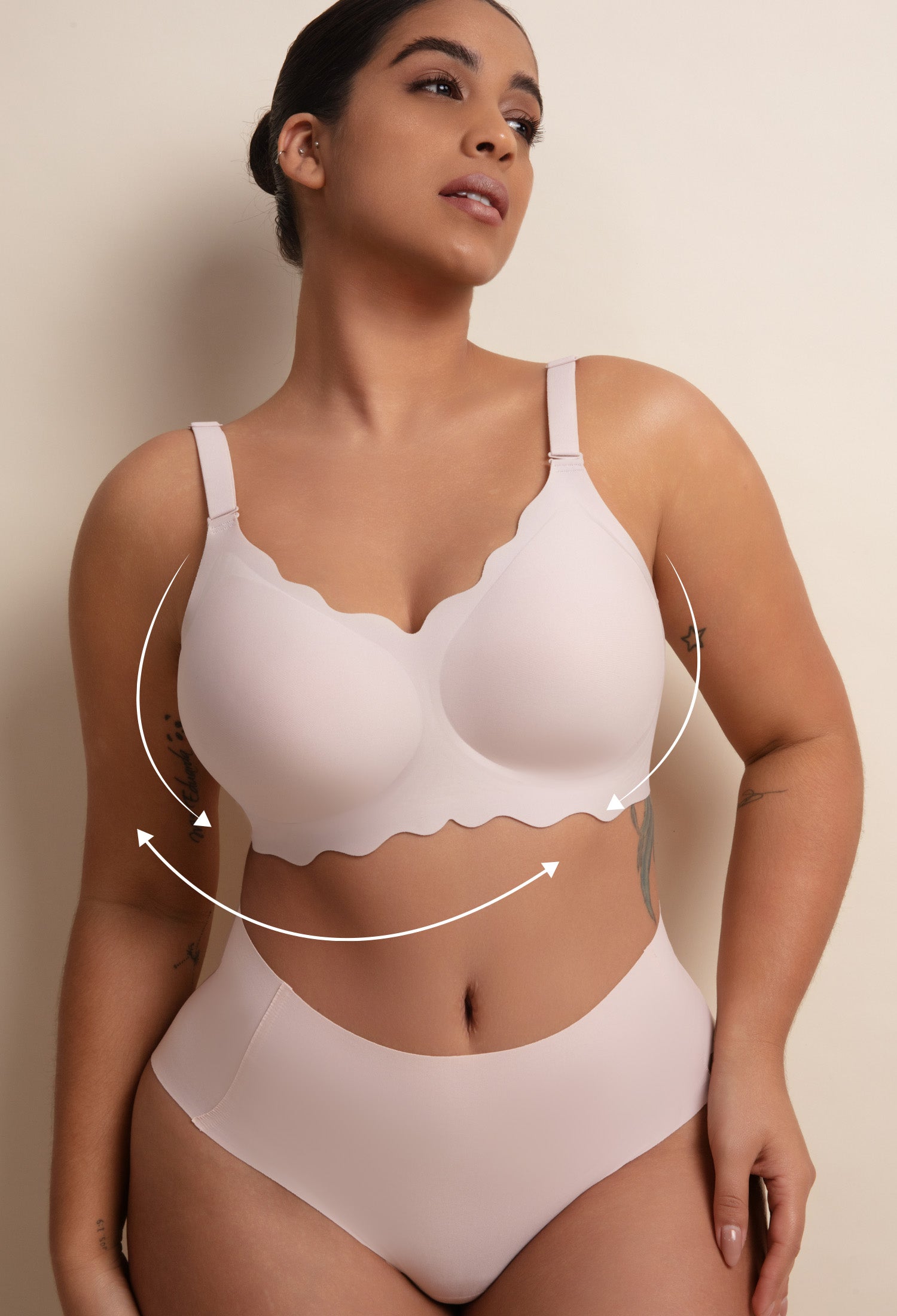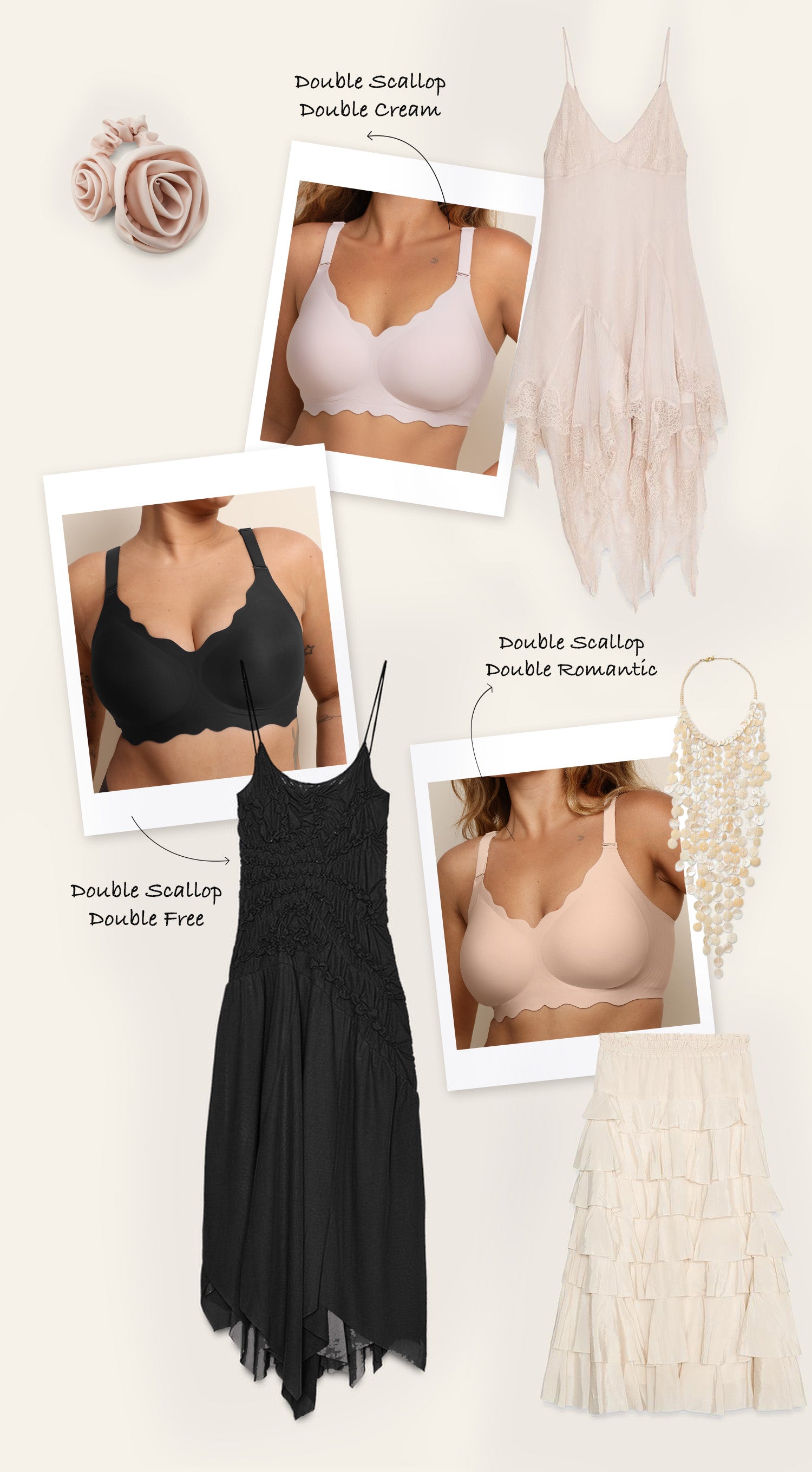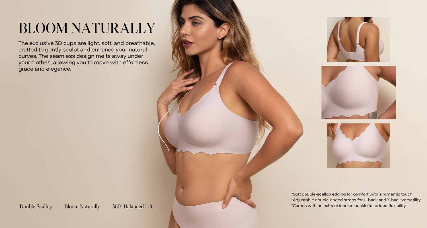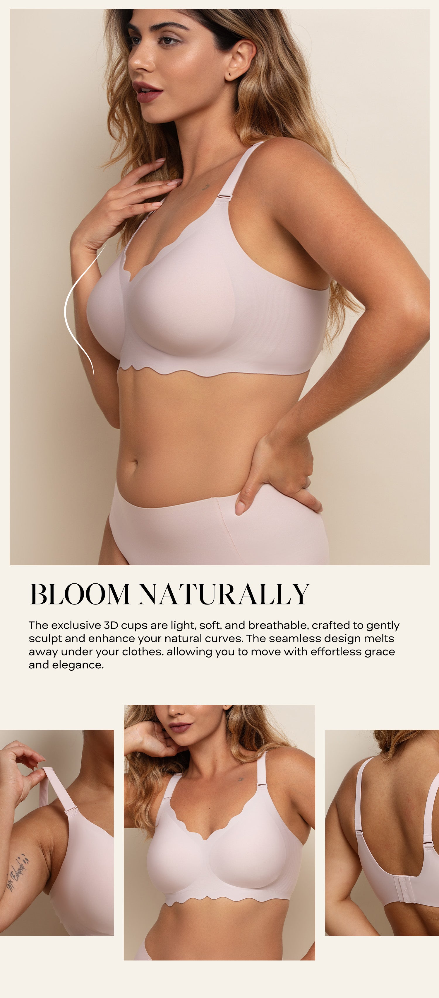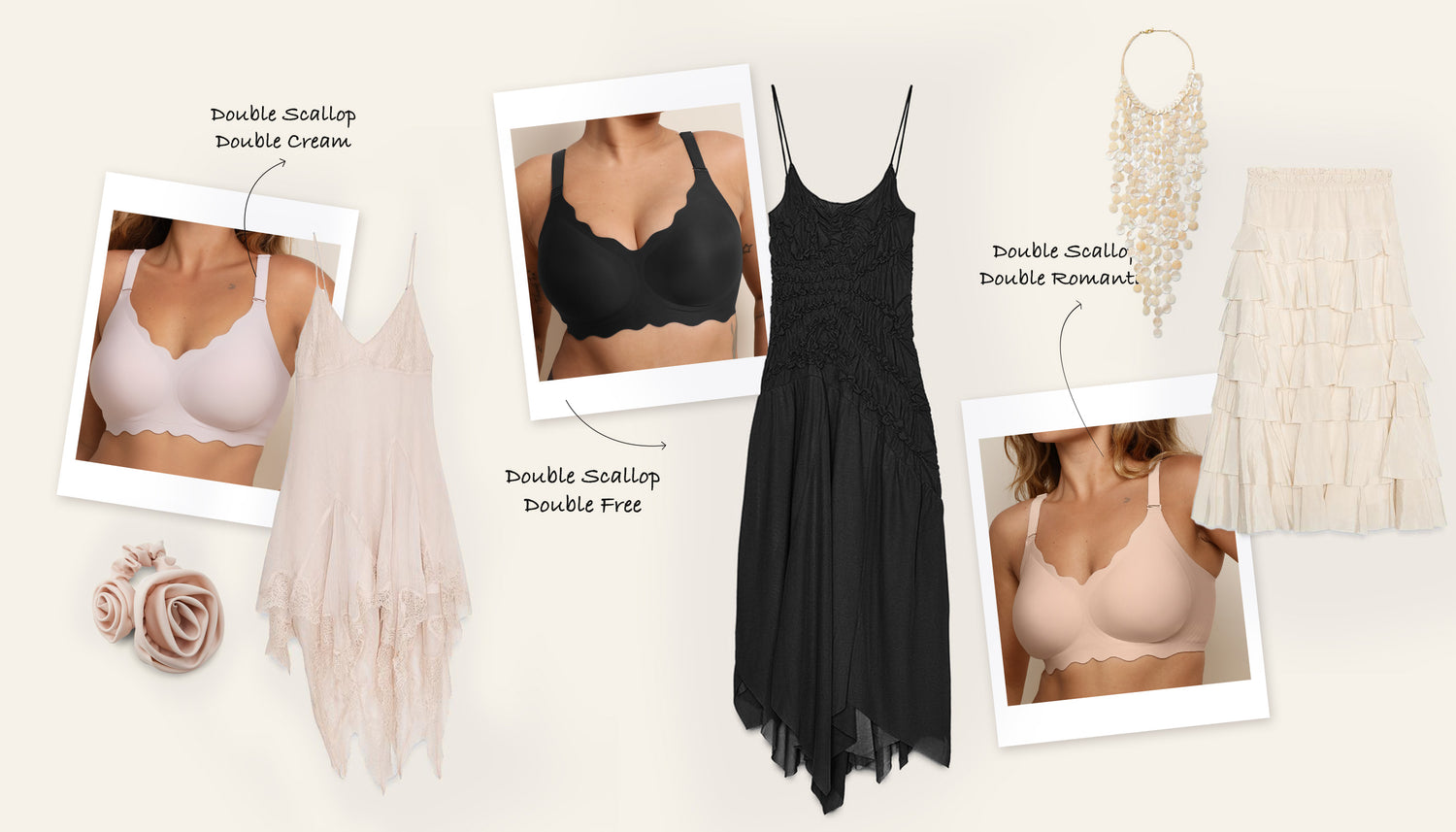 Featuring double-scalloped edges and a wire-free silhouette, it offers soft support with a refined touch. Crafted with breathable fabric and bonded details, it blends minimalist design with graceful femininity—perfect for everyday wear.