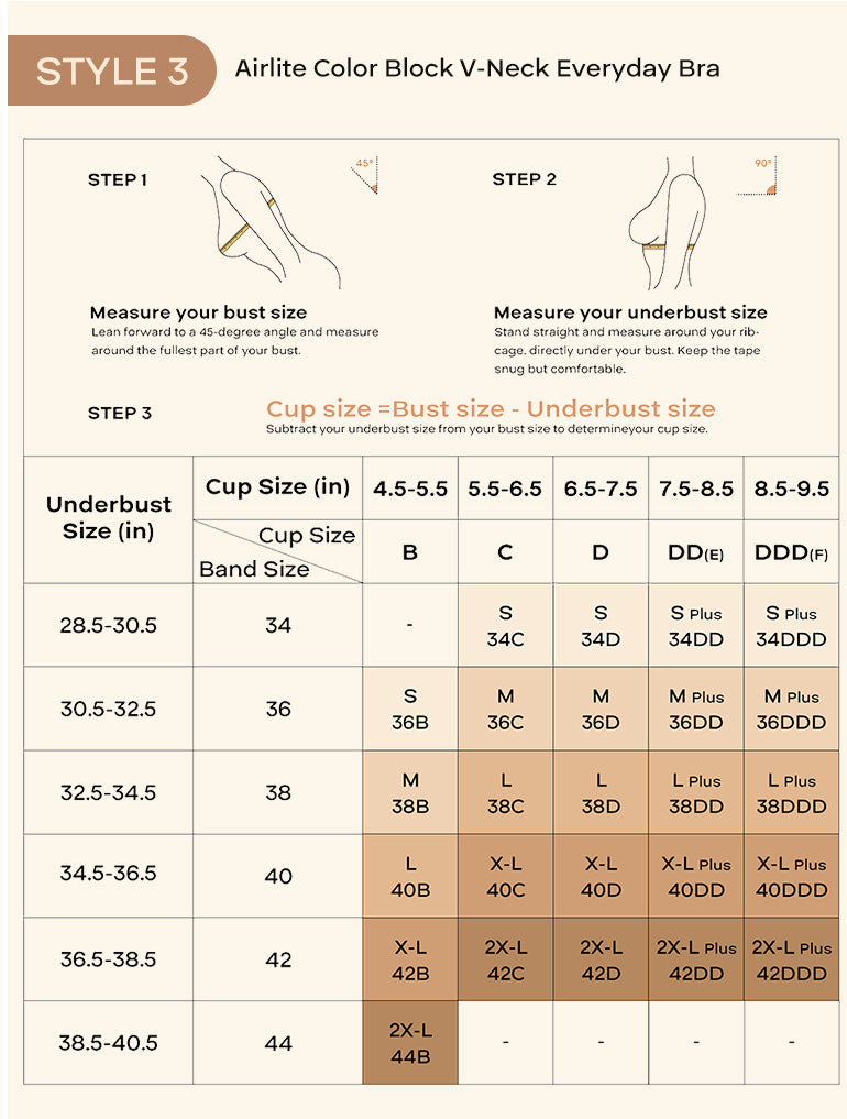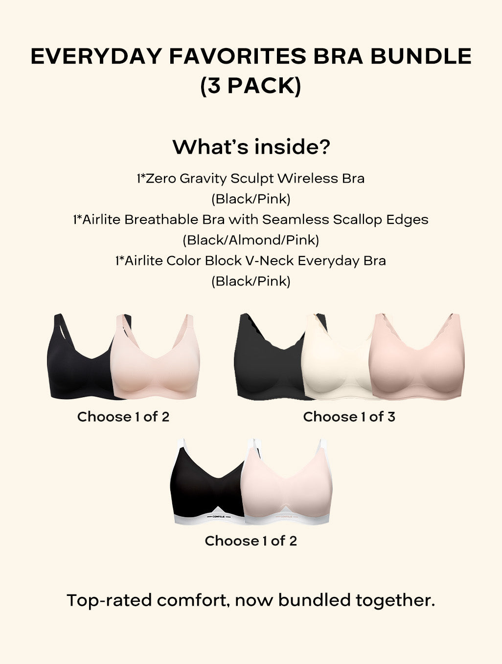 Fit Note: Each style in this wireless bra bundle has its own unique fit. For the most comfortable experience, please review your underbust and overbust measurements and refer to the size chart for each design before selecting your size.