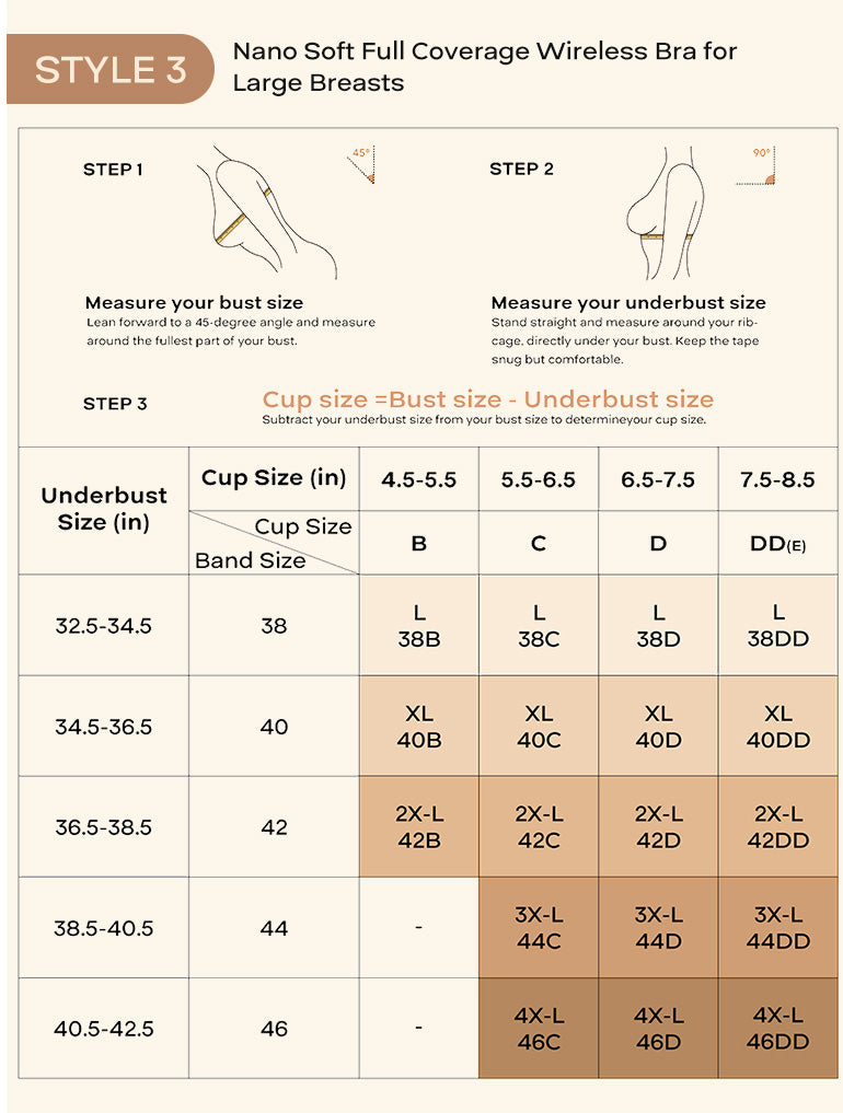 Fit Note: Each style in this wireless bra bundle has its own unique fit. For the most comfortable experience, please review your underbust and overbust measurements and refer to the size chart for each design before selecting your size.